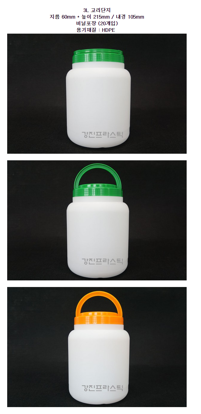 지름 60mm * 높이 215mm, 내경 105mm에 용기재질은 HDPE입니다.