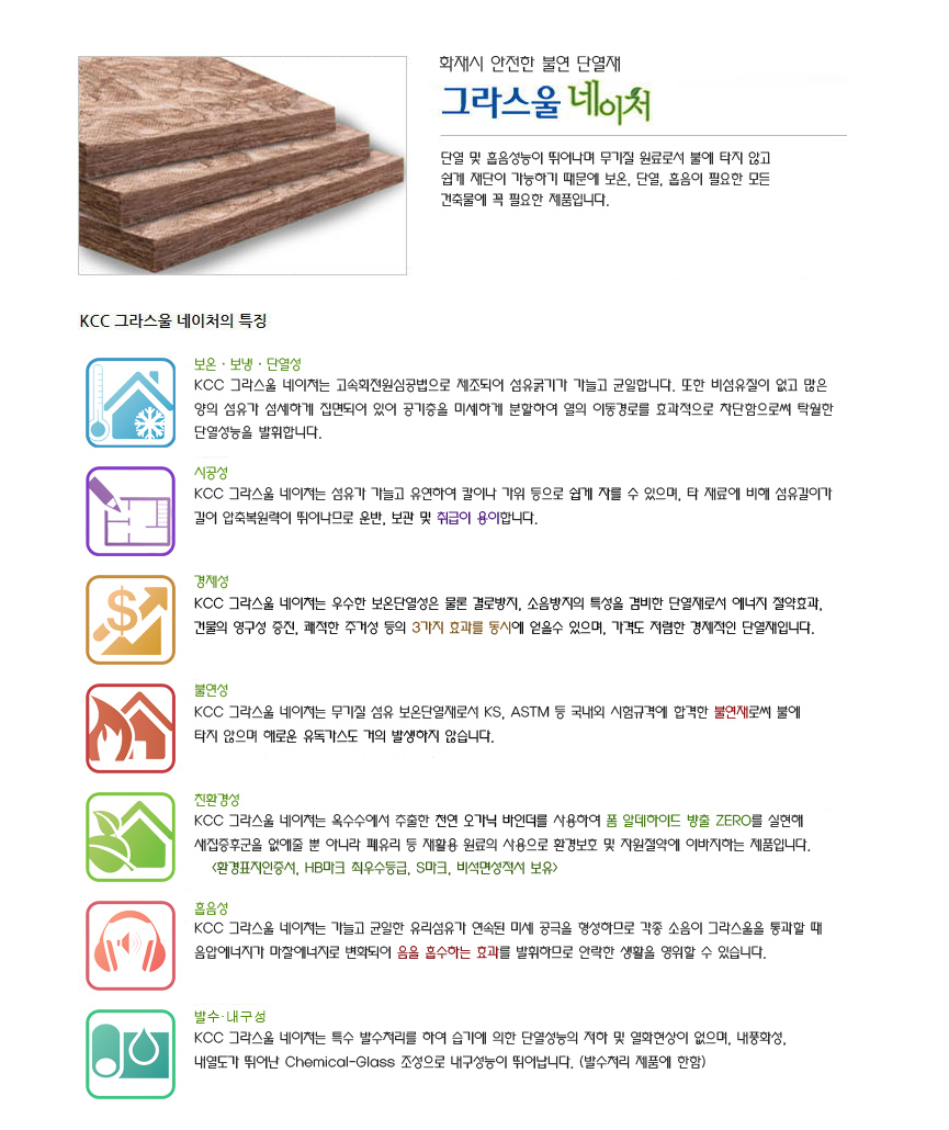 단열 및 흡음성능이 뛰어나며 무기질 원료로서 불에 타지 않고 쉽게 재단이 가능합니다.