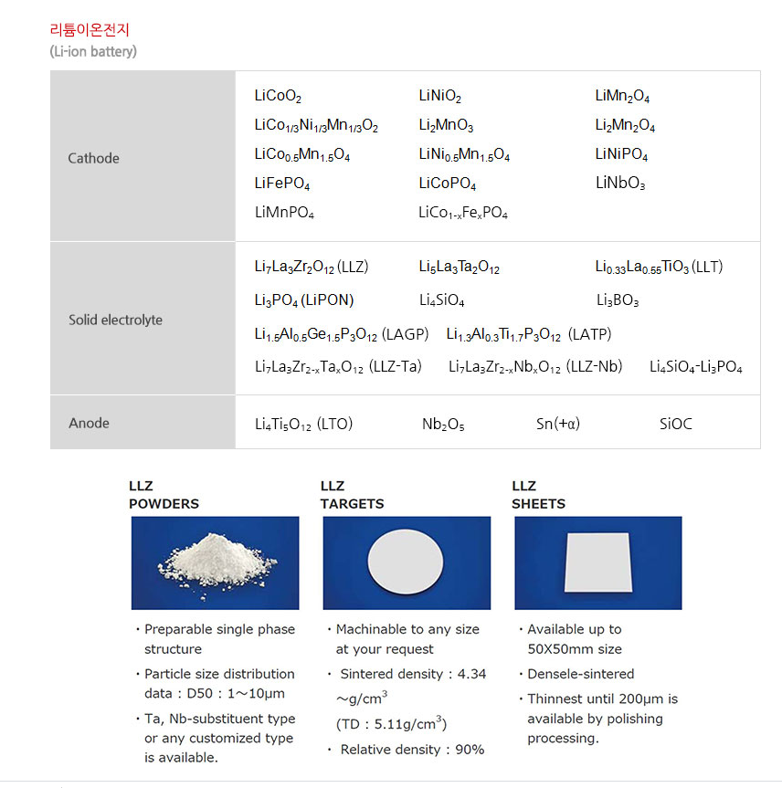 스퍼터링타겟, PLD타겟, 펠렛, 파우더