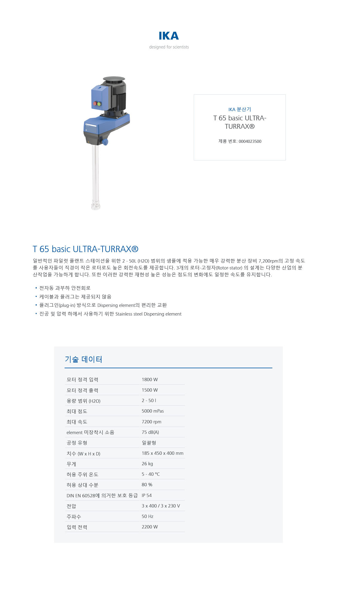 IKA분산기 T 65 basic ULTRA-TURRAX