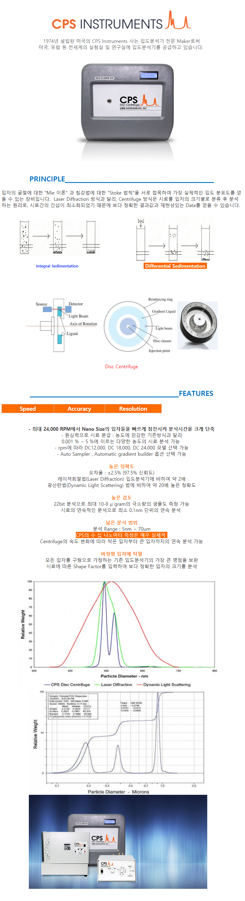Centrifuge 방식은 시료를 입자의 크기별로 분류 후 분석하는 원리로, 시료간의 간섭이 최소화되었기 때문에 보다 정확한 결과값과 재현성있는 Data를 얻을 수 있습니다.