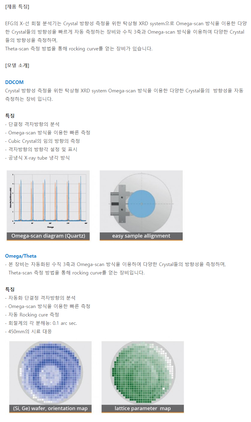 Crystal 방향성 측정을 위한 탁상형 XRD system Omega-scan 방식을 이용한 다양한 Crystal들의 방향성을 자동 측정하는 장비 입니다.