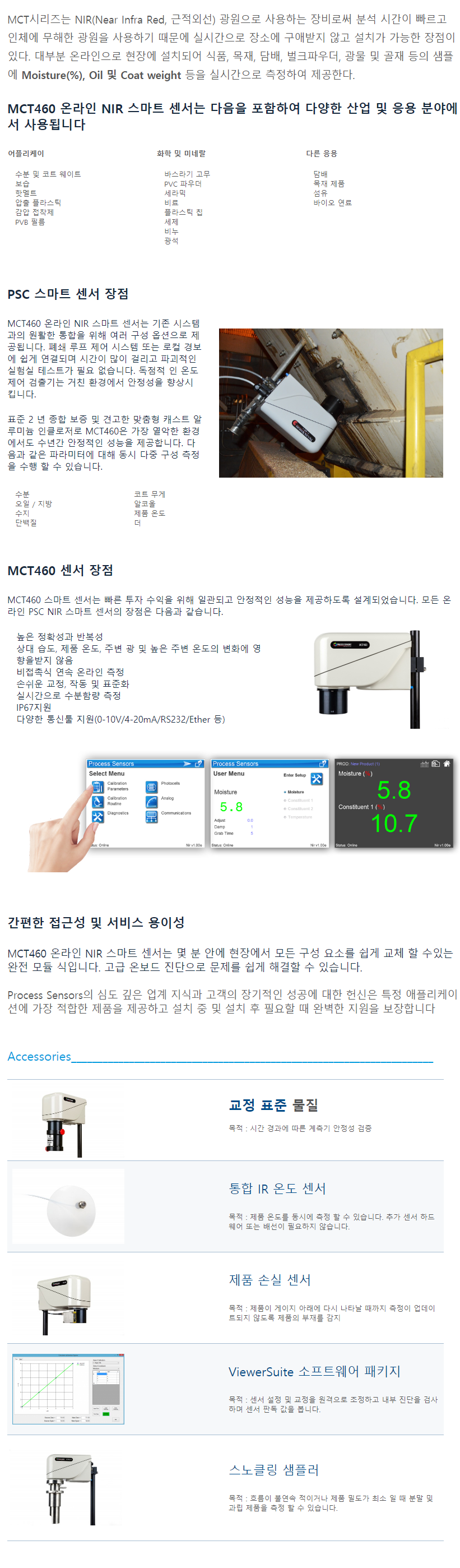 MCT시리즈는 NIR(Near Infra Red, 근적외선) 광원으로 사용하는 장비로써 분석 시간이 빠르고 인체에 무해한 광원을 사용하기 때문에 실시간으로 장소에 구애받지 않고 설치가 가능한 장점이 있습니다.
