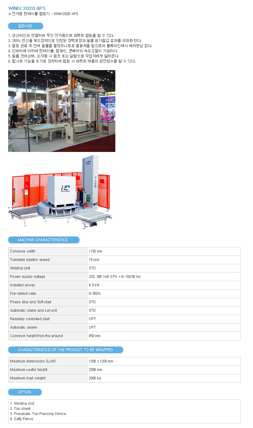 WINIX 2020 APS 전자동 턴테이블 랩핑기