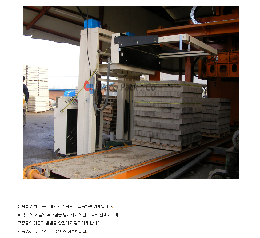 본체를 상하로 움직이면서 수평으로 결속하는 기계입니다. 파렛트 위 제품의 무너짐을 방지하기 위한 최적의 결속기이며 포장물의 취급과 운반을 안전하고 편리하게 합니다.