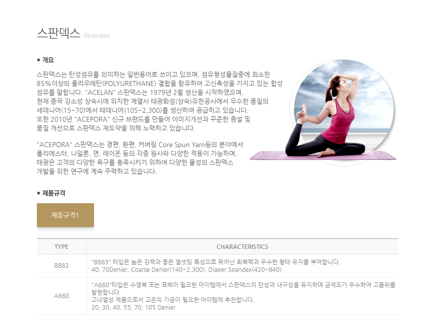 "ACEPORA" 스판덱스는 경편, 환편, 커버링 Core Spun Yarn등의 분야에서