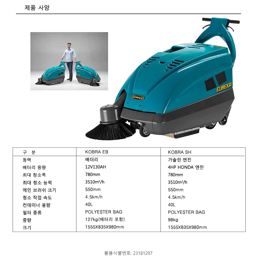 바닥 건식 청소장비 EUREKA KOBRA