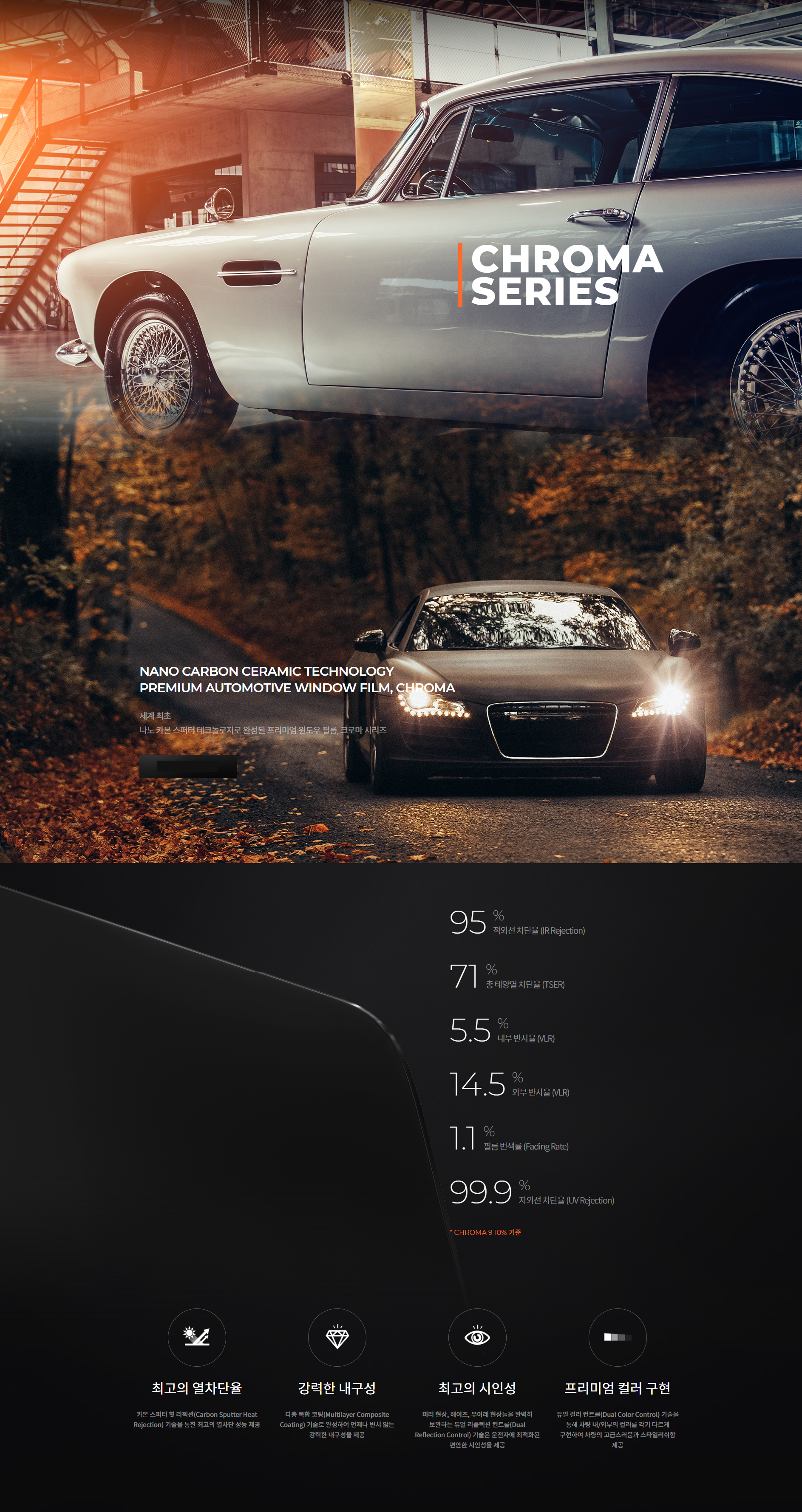 최고의 열차단율, 강력한 내구성, 완벽한 시인성, 프리미엄 컬러 구현이 가능한 프리미엄 윈도우필름입니다.