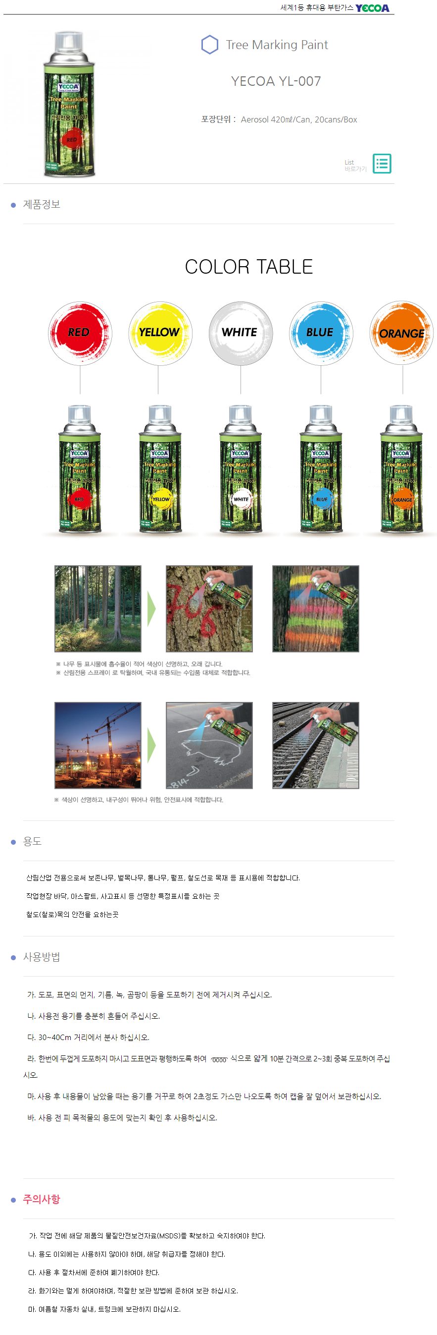 산림산업 전용으로써 보존나무, 벌목나무 등 목재 표시용 적합