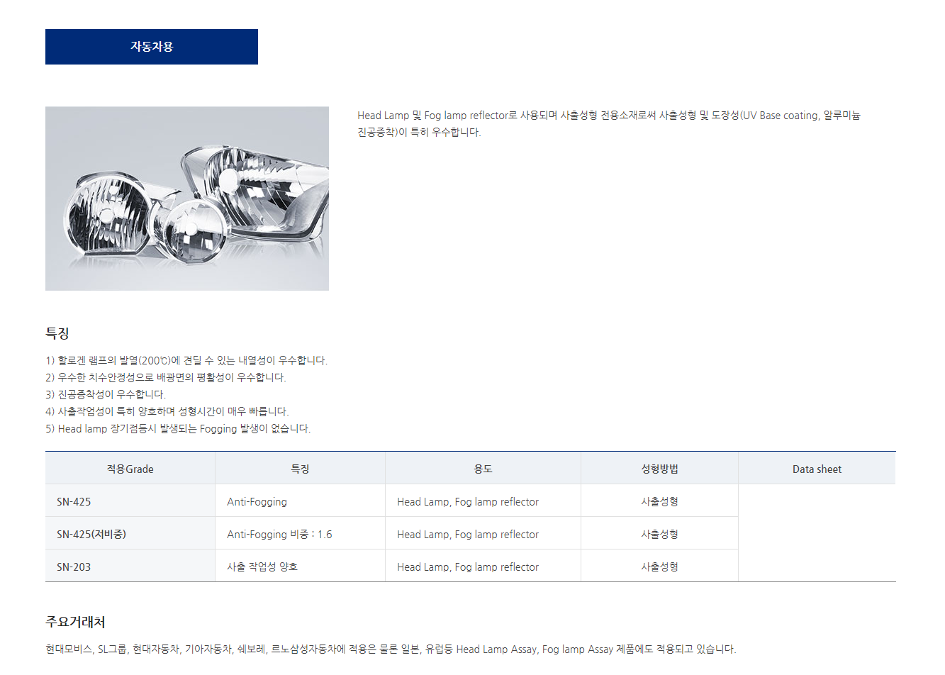 제목 | 기타 정밀 화학 - 자동차용 BMC 벌크 몰딩 컴파운드 |