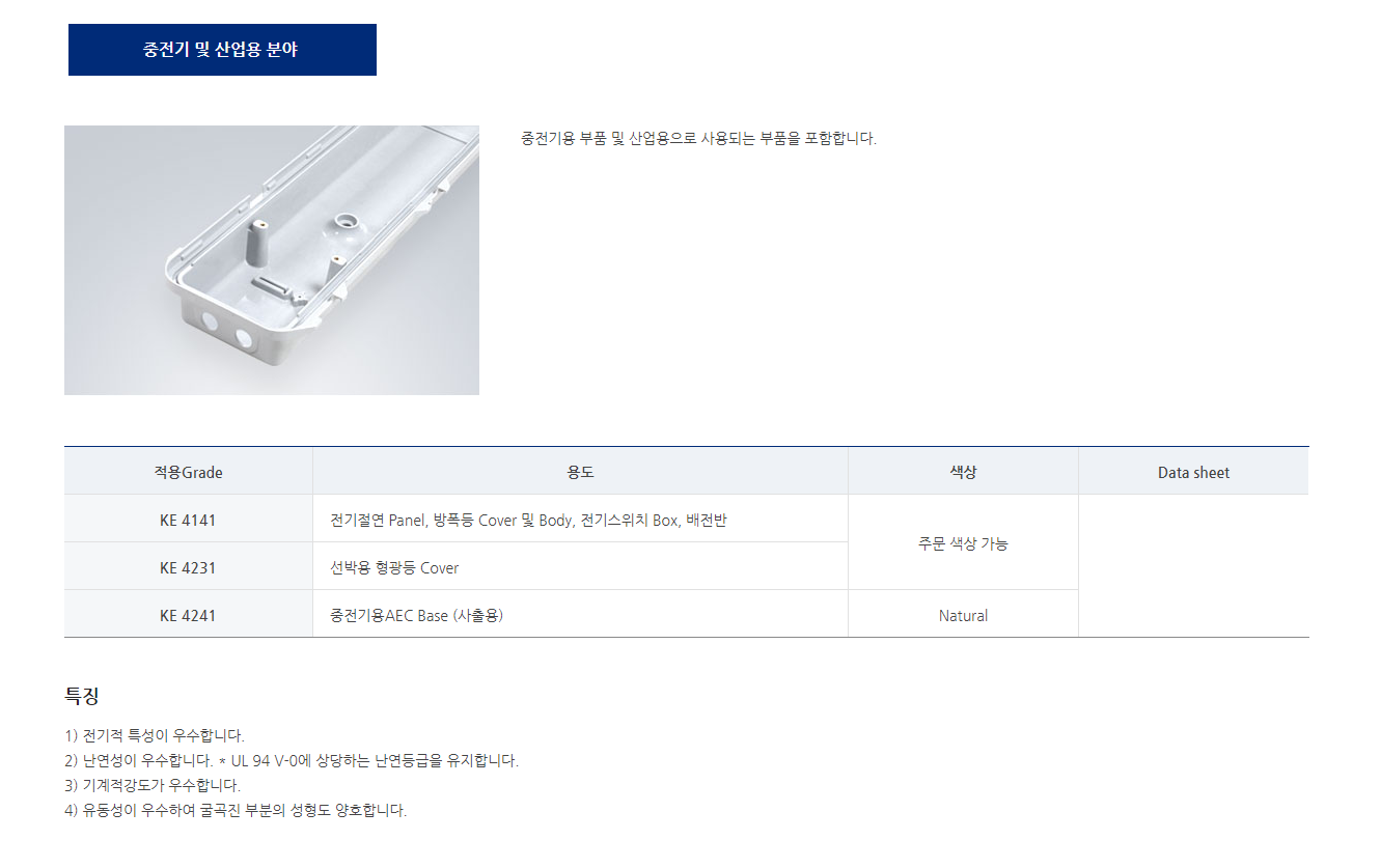 중전기용 부품 및 산업용으로 사용되는 부품을 포함합니다.