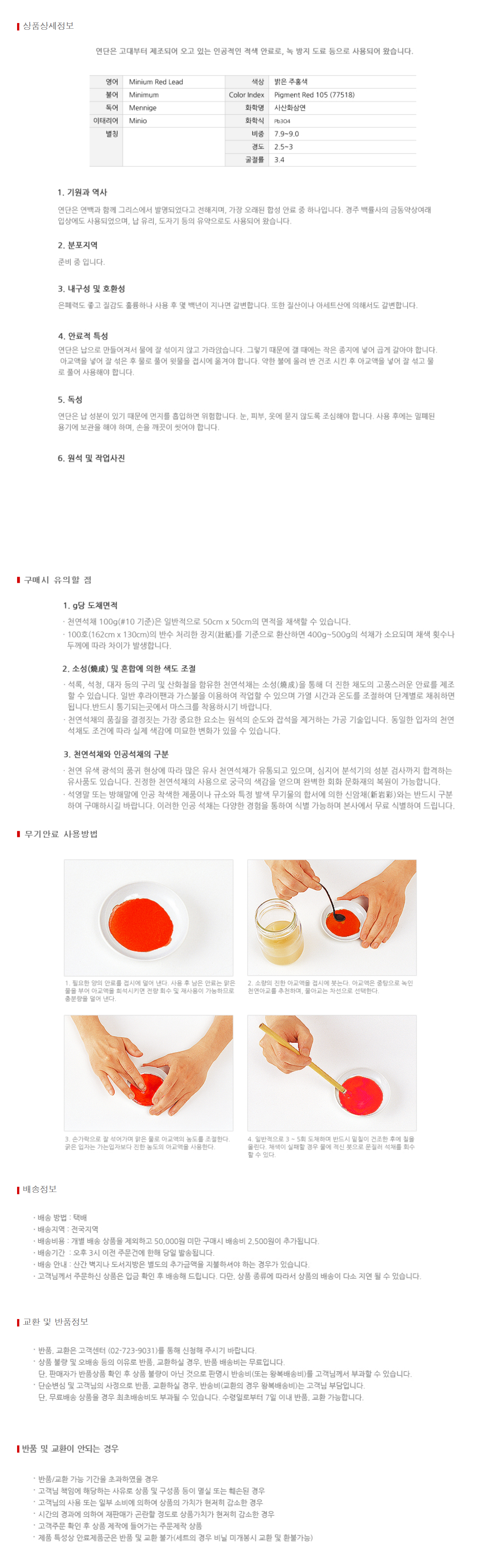 기원전 그리스와 중국에서 제조되기 시작한 합성무기안료들이며 염기성탄산납의 성분으로 구성됩니다. 도색의 편리함과 아름다운 색감으로 여전히 사용되는 안료입니다.