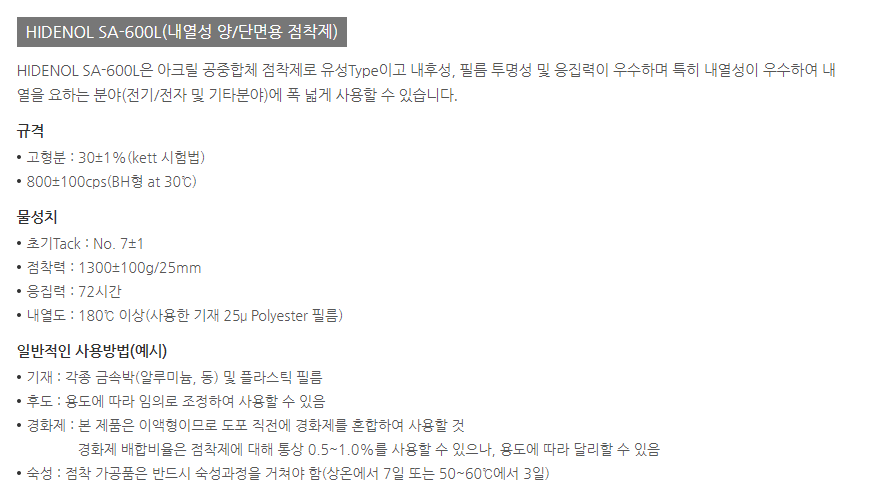 HIDENOL SA-600L(내열성 양/단면용 점착제)