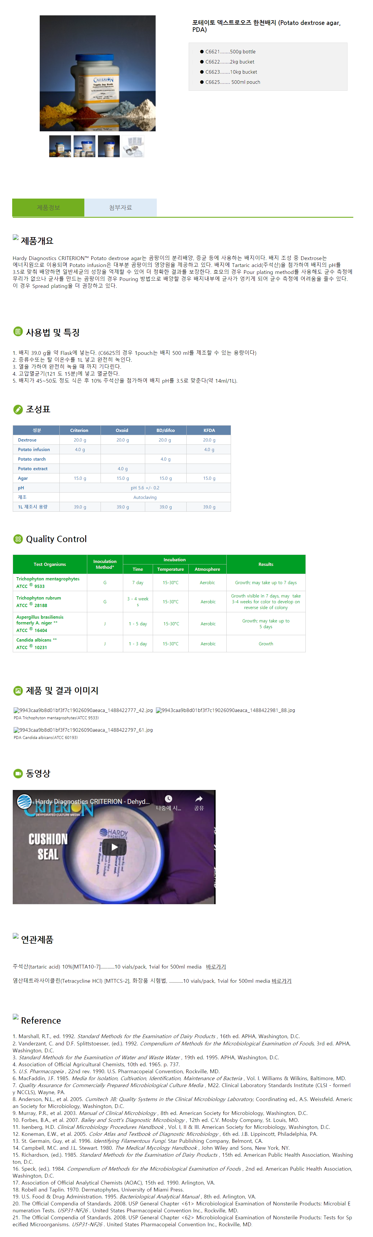 포테이토 덱스트로오즈 한천배지 (Potato dextrose agar, PDA)