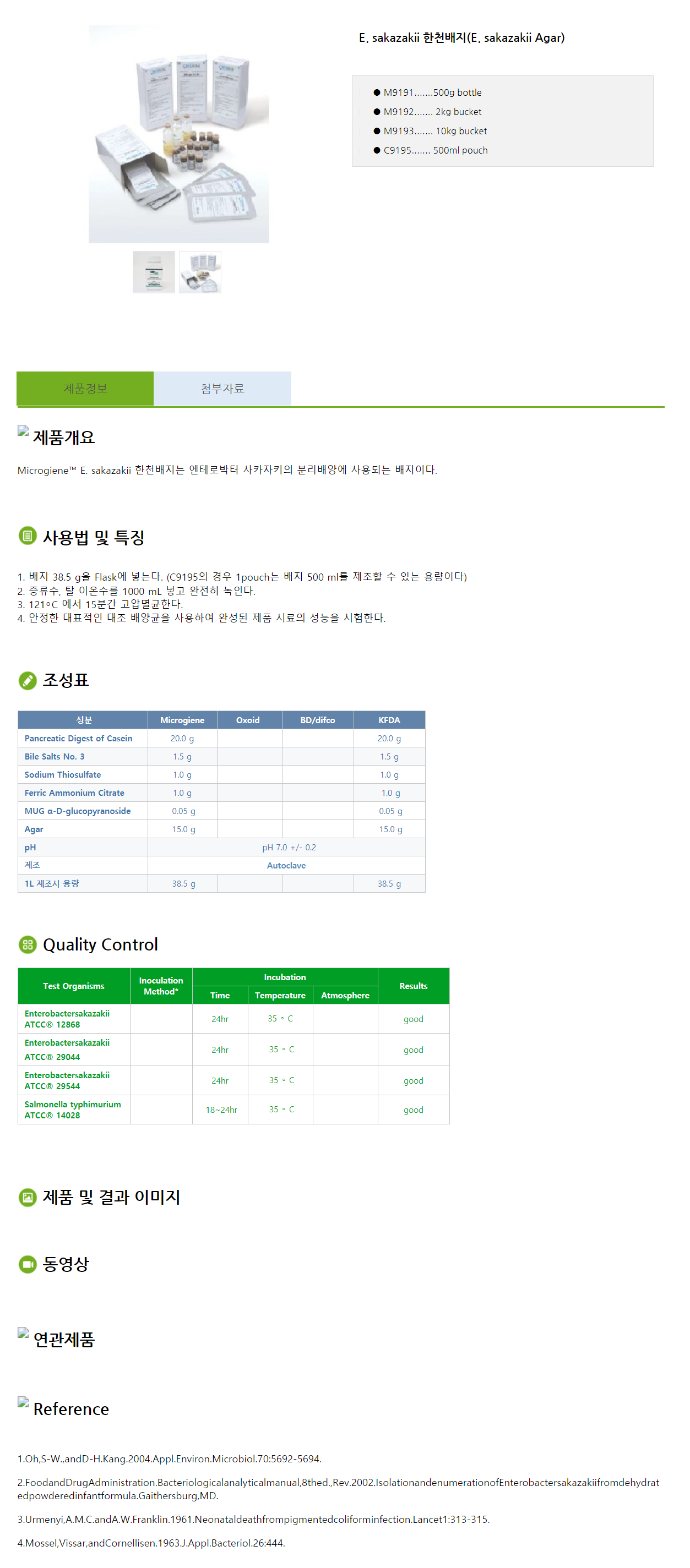 E. sakazakii 한천배지 (E. sakazakii Agar)