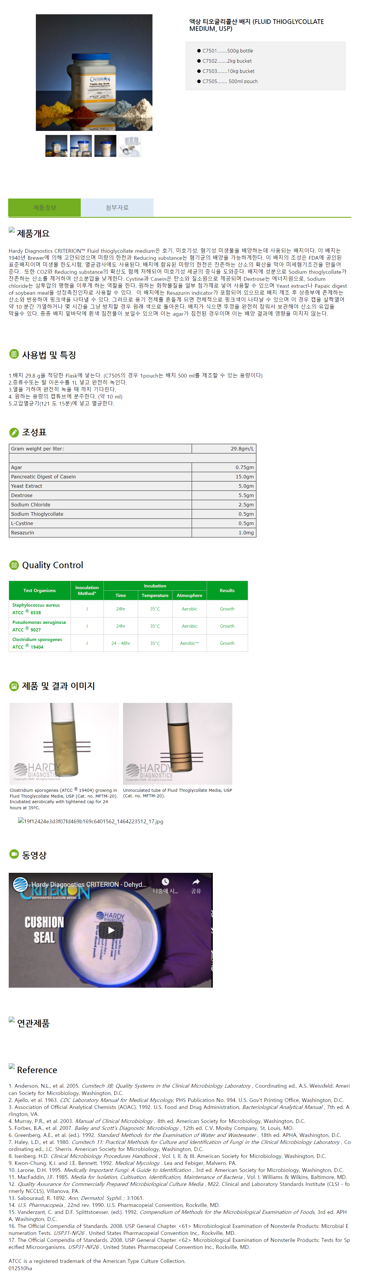 액상 티오글리콜산 배지 (FLUID THIOGLYCOLLATE MEDIUM, USP)