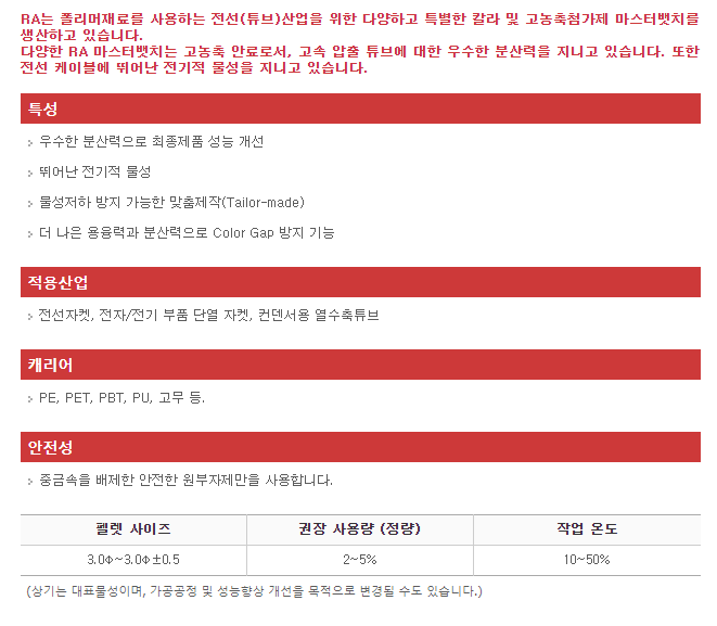 케이블, 튜브 마스터뱃치