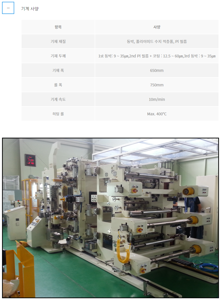 만의 최신 설비이며, 3축 방식으로 박판용 제품이 생산 가능한 설비입니다.