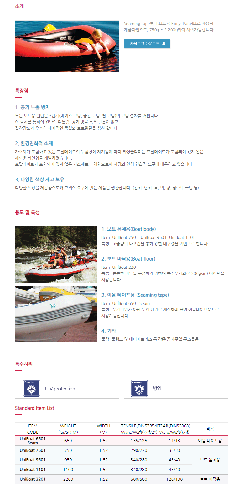 Seaming tape부터 보트용 Body, Panel으로 사용