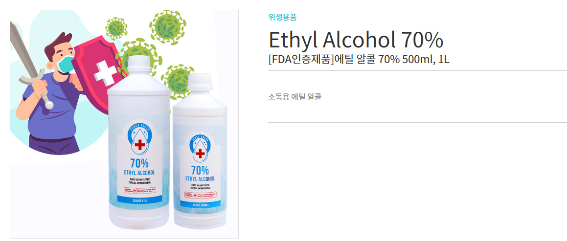 [FDA인증제품]에틸 알콜 70% 500ml, 1L
