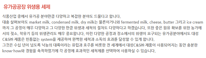 유가공공장 위생용 세제