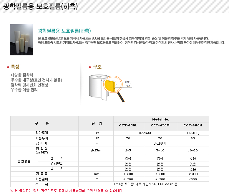 광학필름용 보호필름(하축)