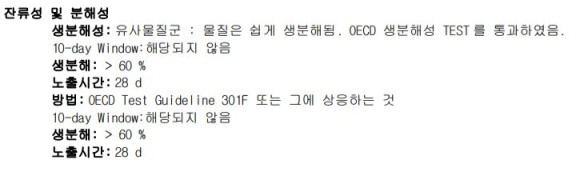 ◎ 우수한 생분해성 + 낮은 독성(수생)
