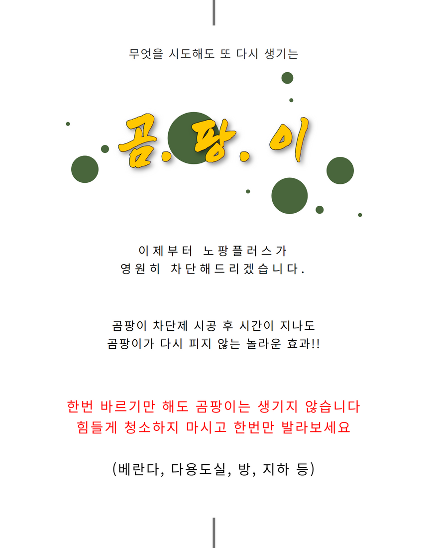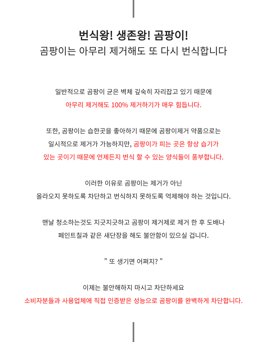 곰팡이가 있었던 부위 혹은 곰팡이를 예방 할 부위에 시공하는 곰팡이 차단 코팅재