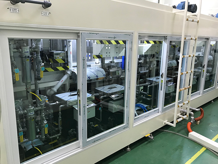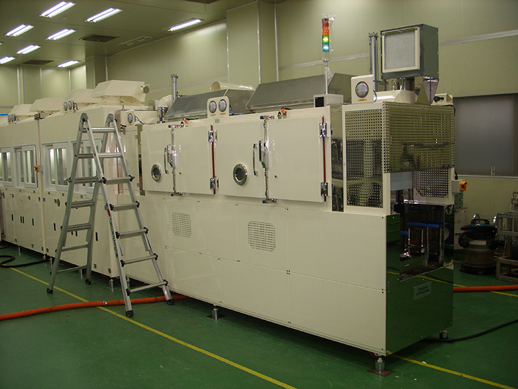 본 장비는 에칭에서부터 세척, 건조, 그리고 프라이머 및 하드코팅까지를 단 한번에 처리하는 완전 자동 생산라인으로 높은 생산성 및 코팅의 부착성, 노웨이브, 노파티를 실현하여 높은 수율을 자랑하는 기계입니다. 하드코팅막은 코팅용액에 디핑방식으로 진행되며 이 코팅막은 렌즈에 스크레치를 방지하고 강도를 더해줍니다.