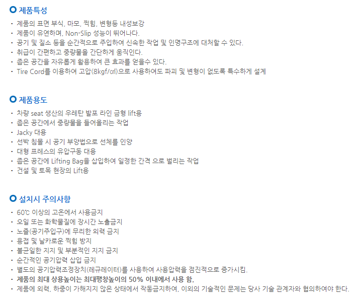 당사는 고객의 요구에 맞춰 다양한 종류의 리프팅 백을 제공합니다.